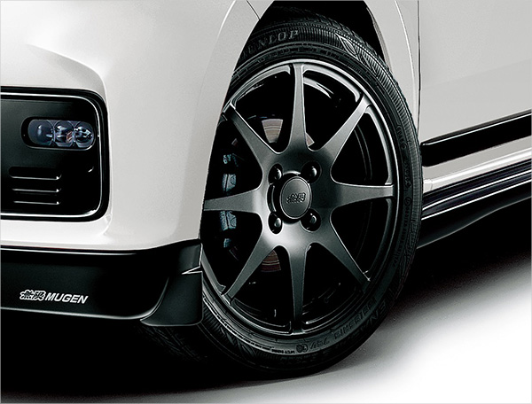 鍛造アルミホイールFR8。強度解析に基づき断面形状やスポーク本数などを決定。鍛造本来の素性を生かしたシンプルなデザイン。サイズ設定は15×5 1/2Jインセット45。カラーはグラファイトガンメタリック。専用ホイールナットは別売り。推奨タイヤサイズは165/55R/15。
