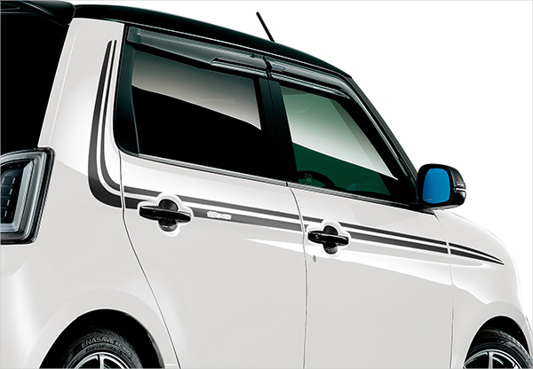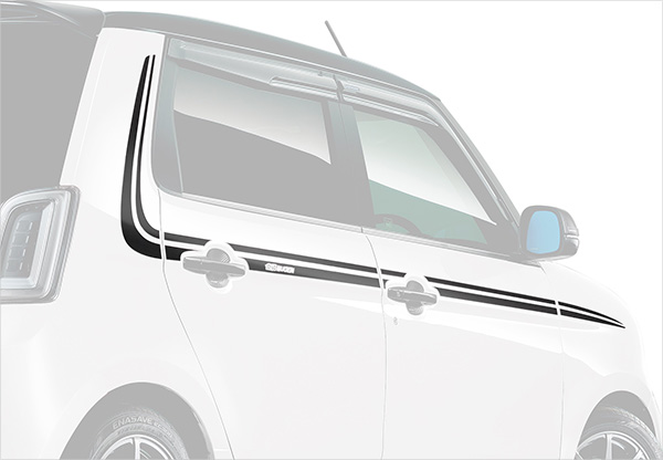 ボディの造形やプレスライン、ドアハンドルとの位置関係に最適にデザインしたボディデカールステッカー。ボディカラーに合わせて選べるブラックとレッドを設定。無限ロゴ部はボディ色を透過。1台分左右セット。