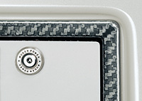 カーボン調のデザインとすることで、エクステリアのアクセントとなりスポーティな雰囲気を演出。塩ビ製。シボ加工。2枚セット。