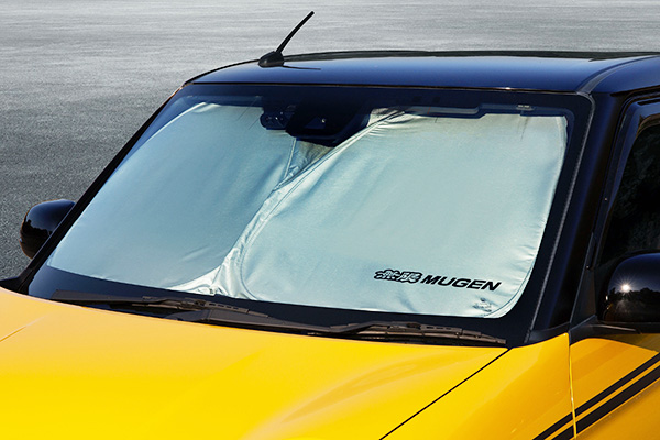 日差しを遮断することで車内温度の上昇を抑制するとともに、紫外線によって発生する車内の劣化を防ぎます。難燃加工の素材を採用。サンシェード本体と収納袋に無限ロゴをプリント。