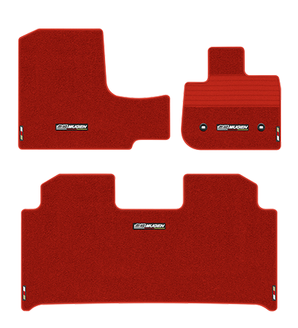 表地は耐久性に優れたナイロン素材、裏地にはフロアとマットのズレや滑りを防ぐポリエステル素材を採用。また、運転席用マットには磨耗を抑止するヒールパッドを採用。フロント、リア3ヶ所に無限ロゴを刺繍。カラーはレッドのエッジとヒールパッドを採用しスポーティイメージを主張する「ブラック×レッド」と「ブラック」「レッド」の3色を設定。