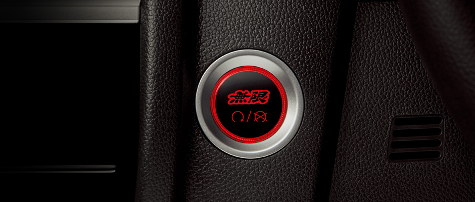 ユニット交換タイプのエンジンスタート/ストップスイッチ。無限ロゴ入りとすることでエンジンON/OFF時のスポーティな雰囲気を演出。