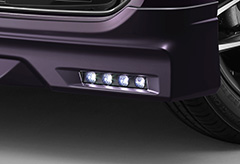高輝度LEDを採用したエアロイルミネーション。イグニッションに連動して常時点灯。照射色はシャープなホワイトを設定。フロントアンダースポイラーのオプション品。