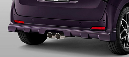 力強い造形でデザインしリアビューにも存在感を主張したリアアンダースポイラー。標準装備リアバンパーに被せて装着。真空成型のABS製。カラード塗装仕上げ(設定4色)。