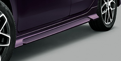 両端の造形を強調しつつ伸びやかなデザインとしたサイドスポイラー。標準装備サイドシルガーニッシュを取り外して装着。真空成型のABS製。左右セット。カラード塗装仕上げ(設定4色)。