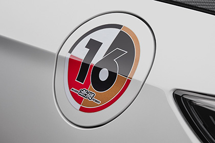 無限のコーポレートカラーである白・赤・金・黒の4色と、ワークスナンバーである「16」を組み合わせたデザインの円形ステッカー。サイズ:直径130mm