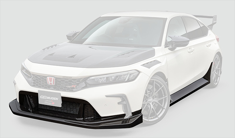 カーボンフロントバンパーロアスポイラーとカーボンリアバンパーディフューザーに追従した張り出しにデザイン性を持たせつつ、ダウンフォースを獲得。フロントバンパーガーニッシュのフィン形状からつながりを持たせたデザインによって、鋭くレーシーなサイドビューを演出。CFRP製により約2.0kgの軽量化。標準装備サイドスポイラーより約24.5mmダウン。