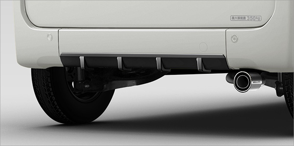 ディフューザー形状を採用したリアバンパーガーニッシュ。ツヤ消しブラック塗装仕上げを設定。真空成型のABS製。