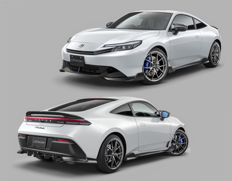 サイドに張り出しを持たせることでワイドスタンスを印象づけるカーボンリアアンダースポイラー。その他のエアロパーツとの同時装着によって無限PRELUDEのスタイルを完成形に導く。標準装備リアバンパーより約31mmダウン。ドライカーボン製クリアコート仕上げ。