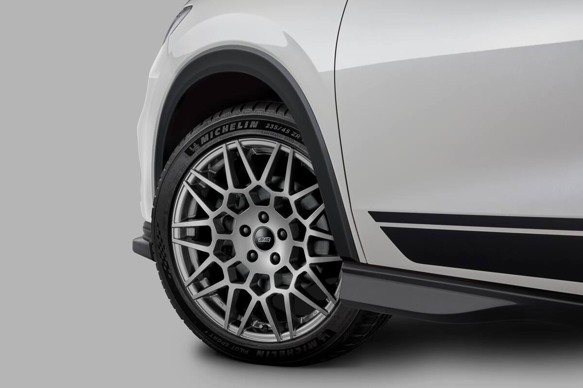 パフォーマンスパーツでは、五角形を基調としたメッシュタイプの19インチアルミホイール「CU20」を新たにラインナップ。幾何学パターンのデザインとガンメタリックカラーがもたらす造形の陰影が足元に重厚感と存在感を与えます。スポーティなデザインと心地よいエキゾーストノートが特徴のスポーツエキゾーストシステム、車体の微振動を減衰し操縦安定性向上を図るパフォーマンスダンパー®も引き続きラインナップしております。