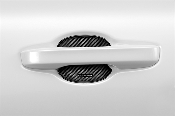 ドア開閉時に爪などによる傷を防止できるだけでなく、カーボン調のシボ加工を施すことでドアハンドルまわりをスポーティに演出。フロント・リア共に適合。Mサイズ2枚入り。