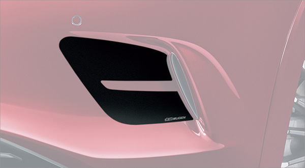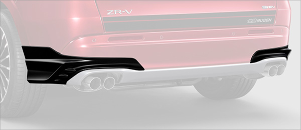 ZR-Vのフロントマスクをより力強く表現する大型のフロントアンダースポイラー。クリスタルブラック・パール(ツヤ有りブラック)をベースにアクセントとしてシルバーを配色することでSUVのダイナミックさと精悍さを引き立てる。クリスタルブラック・パール(ツヤ有りブラック)とシルバーの2トーン塗装。無限ロゴ入り。いずれのボディカラーもクリスタルブラック・パールの装着を推奨。標準装備フロントバンパーより約25oダウン。真空成型のPPE製。