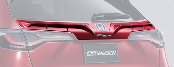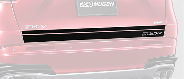 水平基調のデザインがワイド感を演出しリアビューを引き締めるテールゲートデカール。無限ロゴ入り。