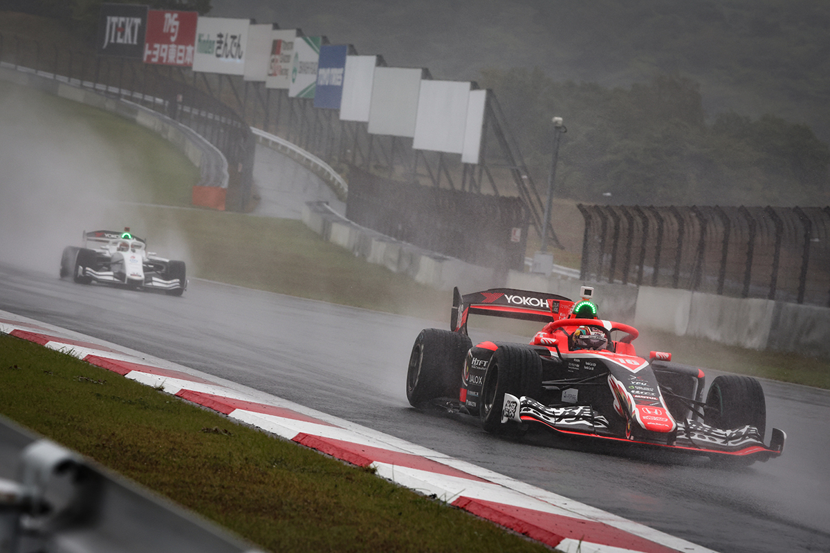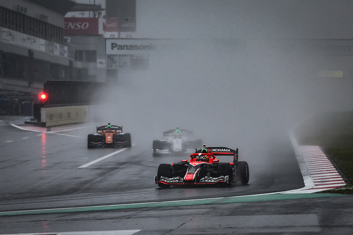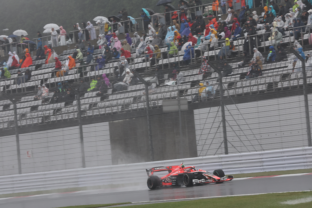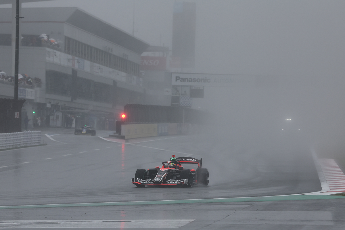 決勝では野尻選手が3位から、岩佐選手は最後尾からのスタートで追い上げる展開を期待していましたが、悪天候によるセーフティカー先導で12周でレースを終えることになりました。