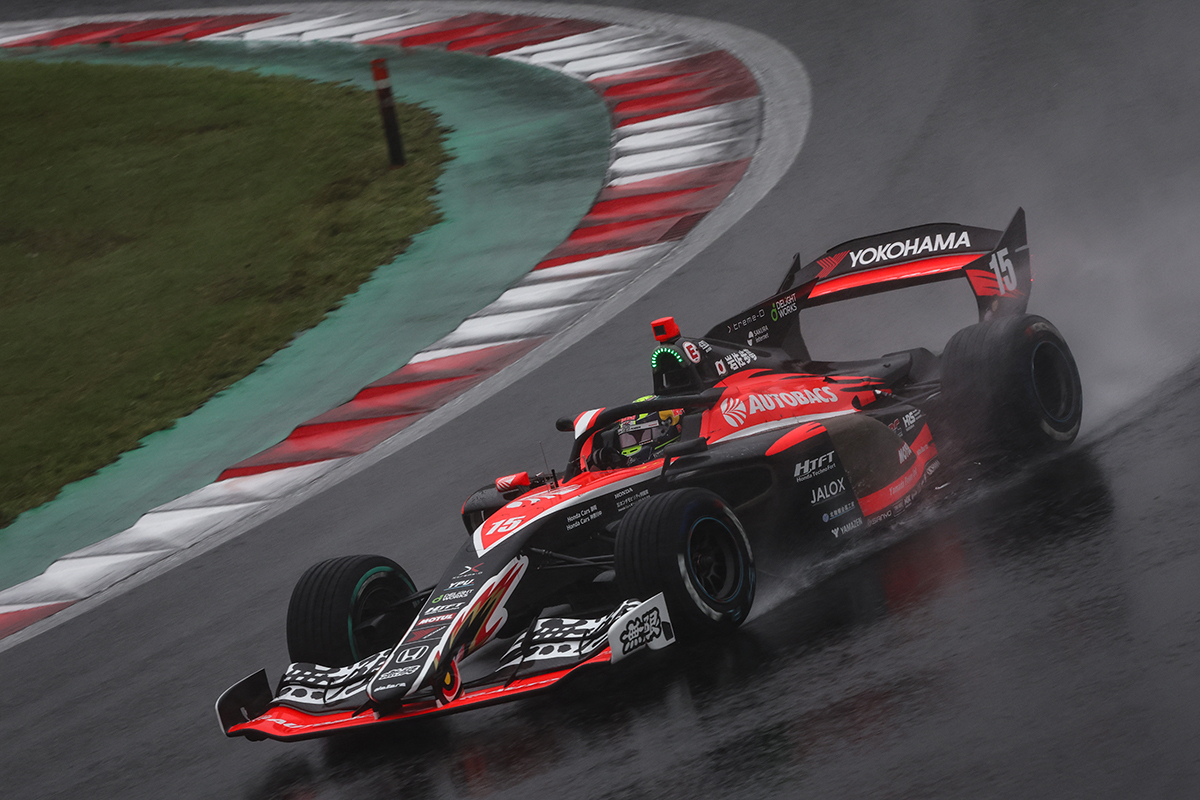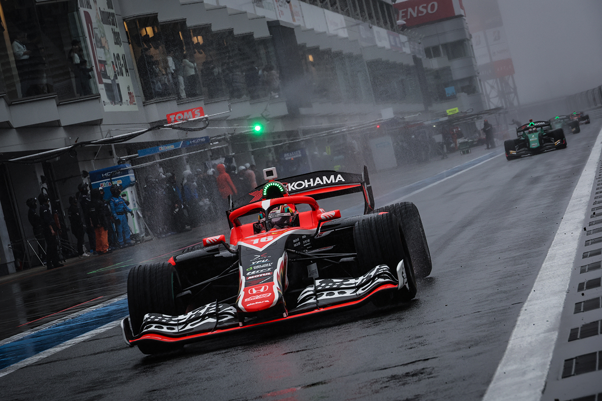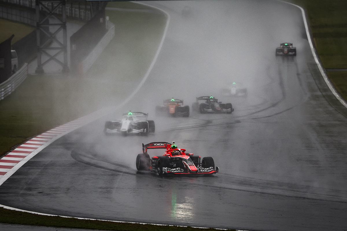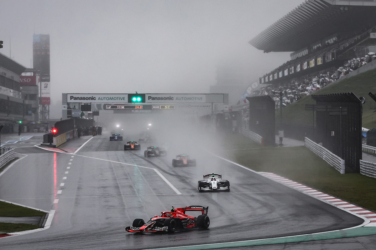 決勝では野尻選手が3位から、岩佐選手は最後尾からのスタートで追い上げる展開を期待していましたが、悪天候によるセーフティカー先導で12周でレースを終えることになりました。