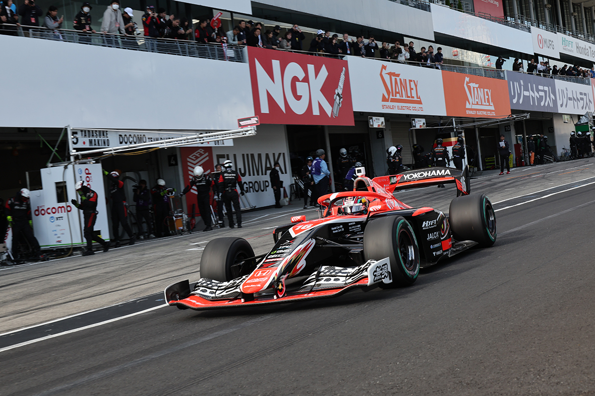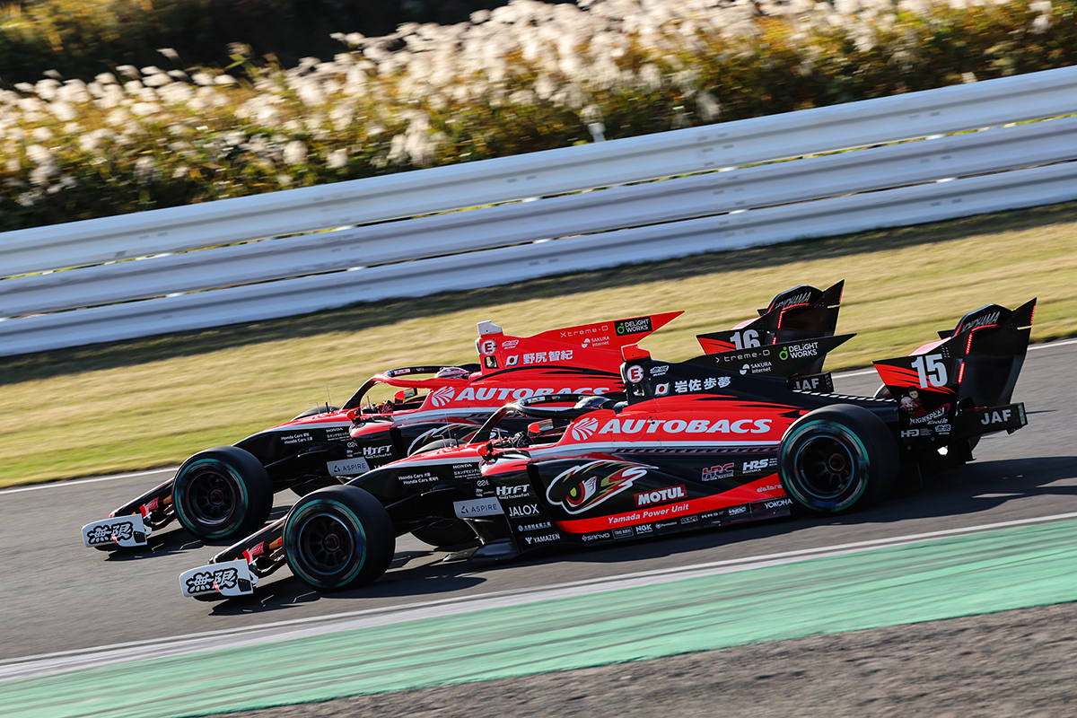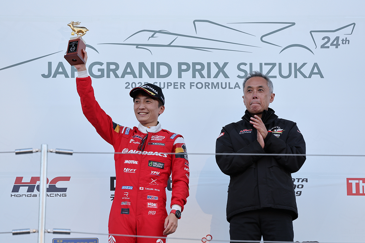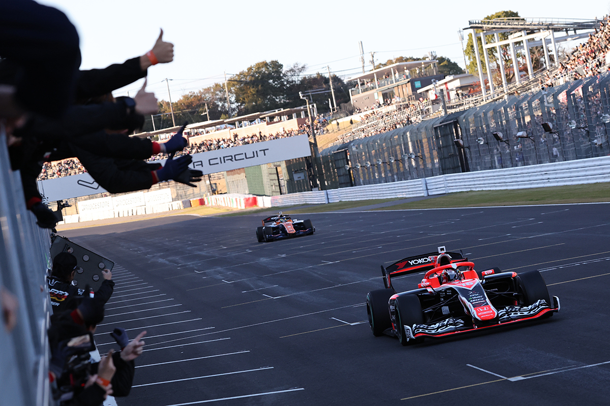午後に行なわれた第11戦決勝は、野尻選手がようやく今シーズンの初勝利を飾ってくれて、内容も野尻選手らしい速さをもっての勝利で嬉しく思っています。