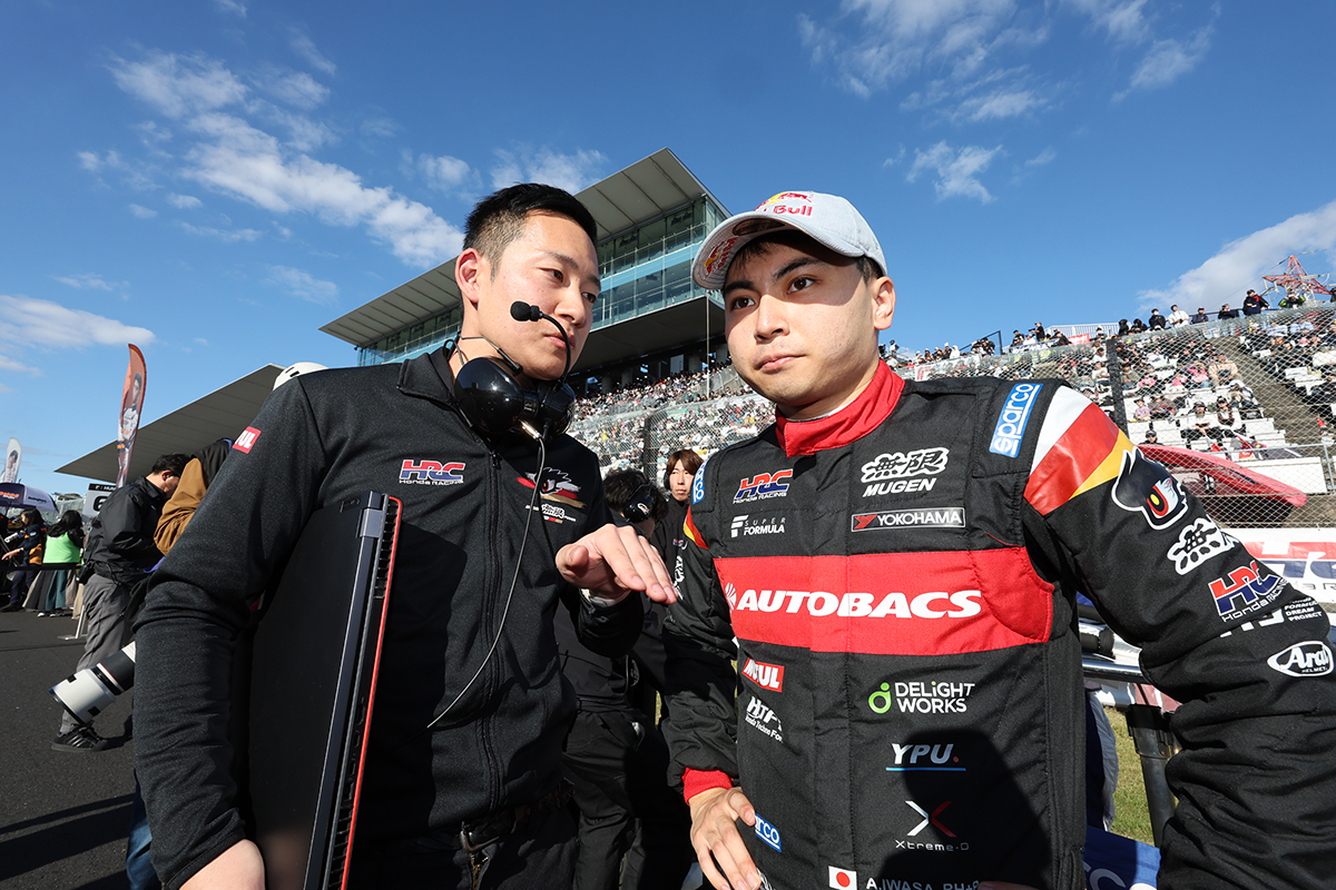 予選Q2セッションがスタート。少し待機して合間をはかり両車コースイン。結果、岩佐選手が自身初の鈴鹿サーキット、および今シーズン2回目のポールポジションを獲得。野尻選手も2位となり、TEAM MUGENが予選1-2を獲得。決勝グリッドのフロントロウを独占。
