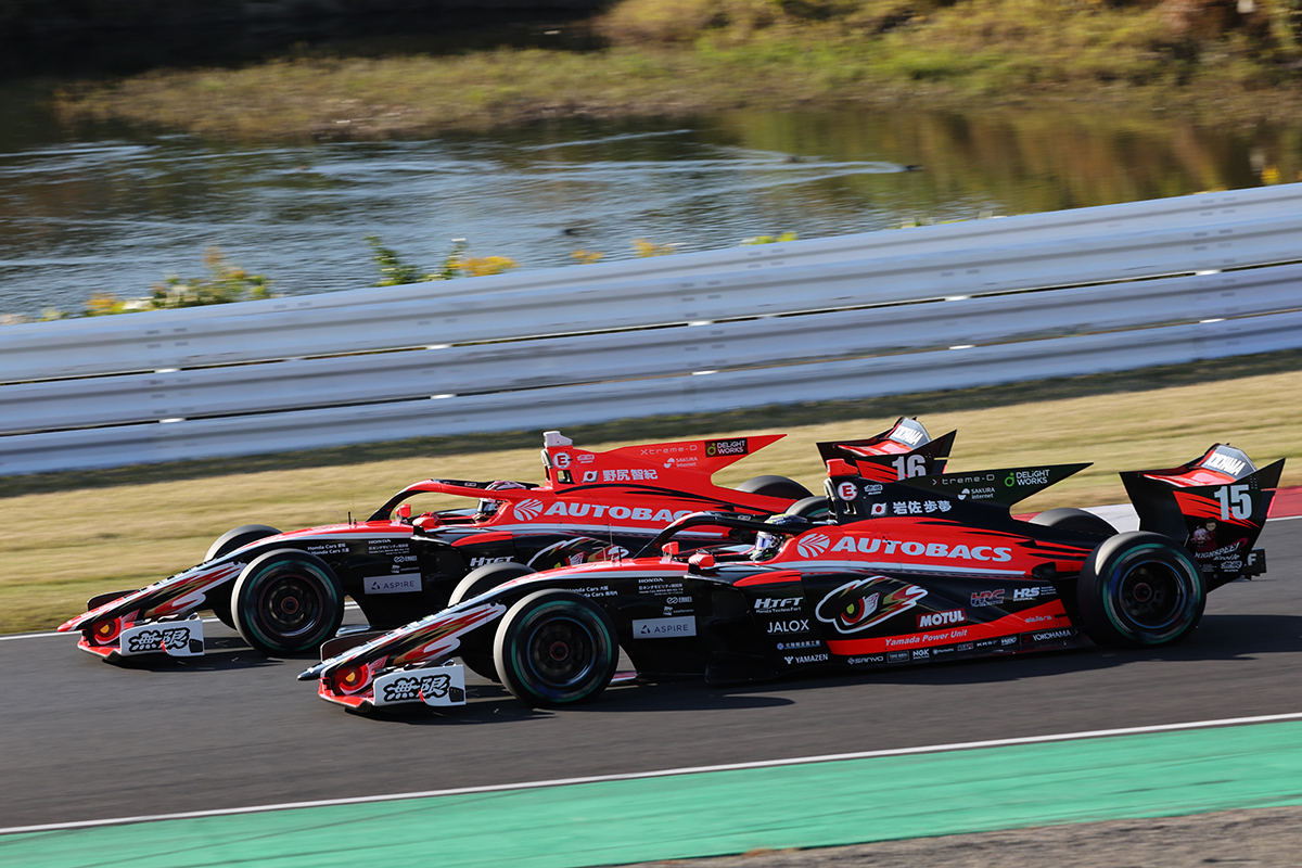 ■田中監督午前中に第11戦と第12戦の予選が行われ、それぞれの予選で岩佐選手がポールを獲り、野尻選手が2位となり両方の予選で1-2となる最高の結果を得ることができ、チャンピオンシップに対してとても期待できる結果となりました。
