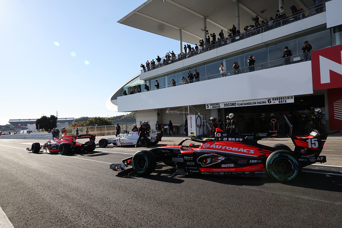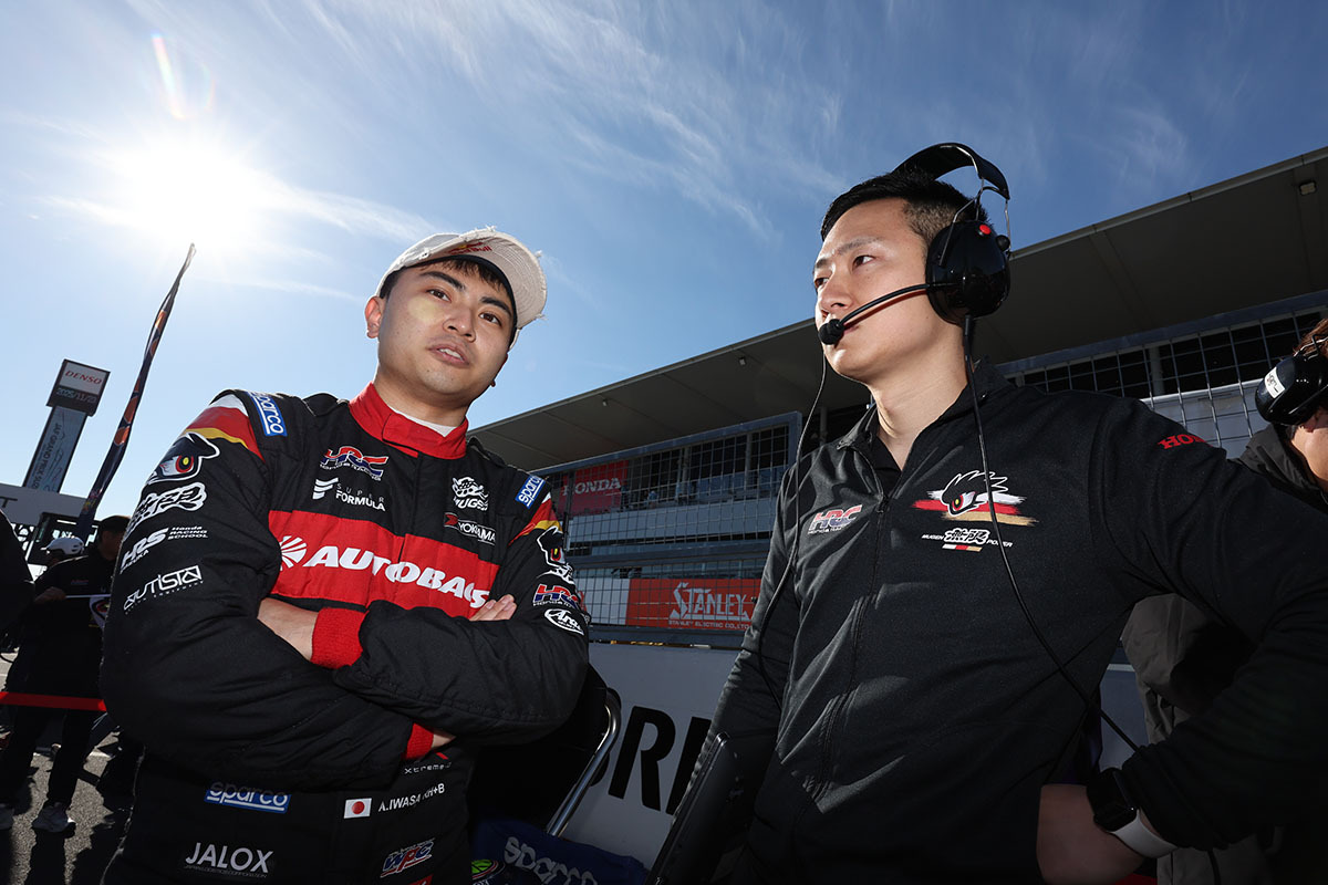 第10戦 決勝は本来10月12日(日)に富士スピードウェイにおいて実施されるはずだったが、濃霧による天候不良によりキャンセル。今回、JAFグランプリへの編入が決定され、タイヤ交換の義務がない19ラップによるスプリントレースとして代替開催が決定。本決勝のスターティンググリッドは富士スピードウェイの予選結果が採用され、岩佐選手は4位、野尻選手は5位からのスタート。