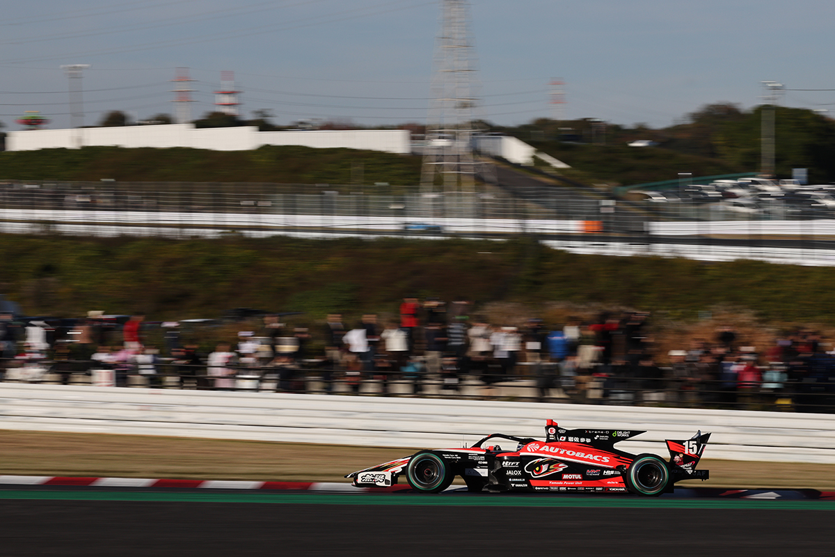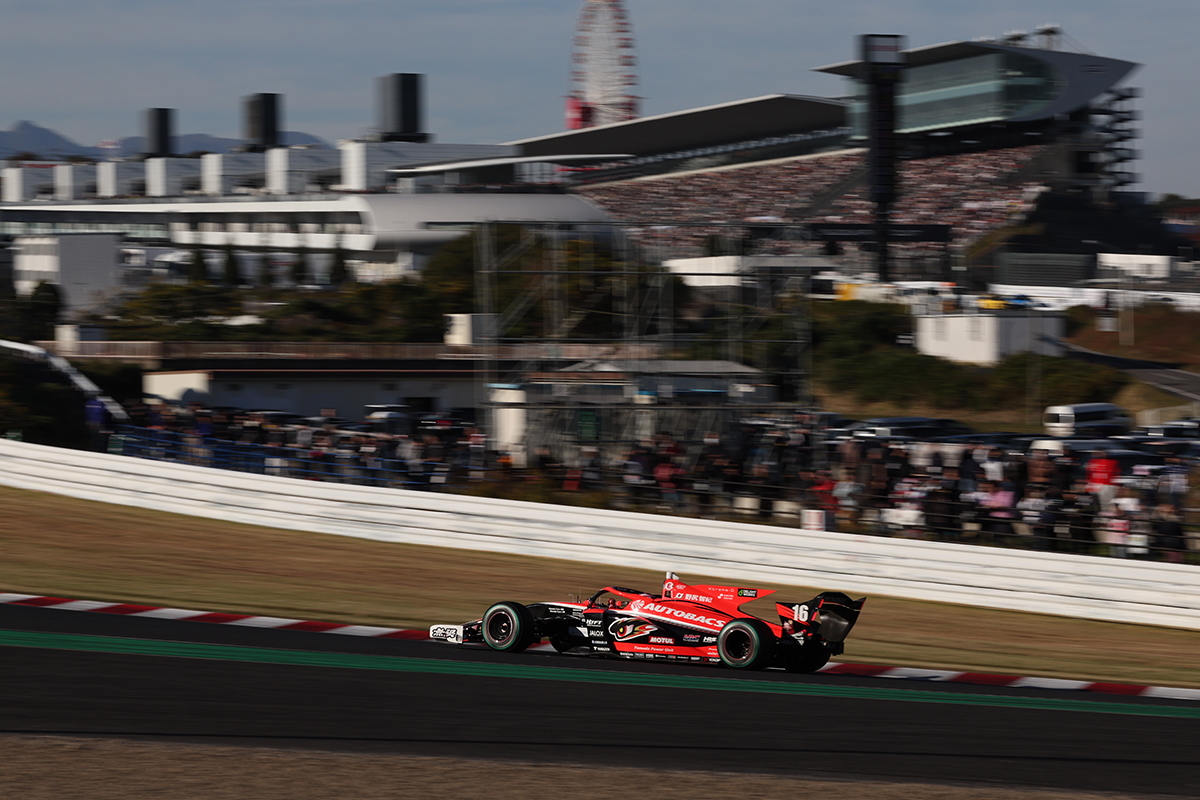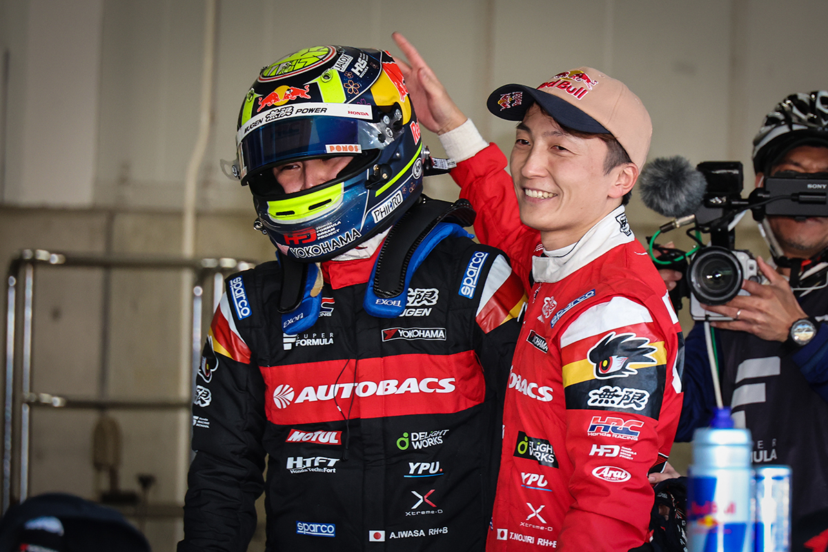 第11戦の予選をまるで再現するかのように、予選Q1は岩佐選手がトップタイムで通過、野尻選手はグールプ内3位で通過。2台揃ってQ2に向けセットアップを確認。予選Q2セッションがスタート。少し待機し合間をはかって、野尻選手、岩佐選手もコースイン。そして再び岩佐選手がポールポジション、野尻選手は2位を獲得し、TEAM MUGENが2戦連続で決勝グリッドのフロントローを独占。ドライバーズチャンピオン、チームチャンピオン獲得に向けて良い流れをつかんだ予選に。