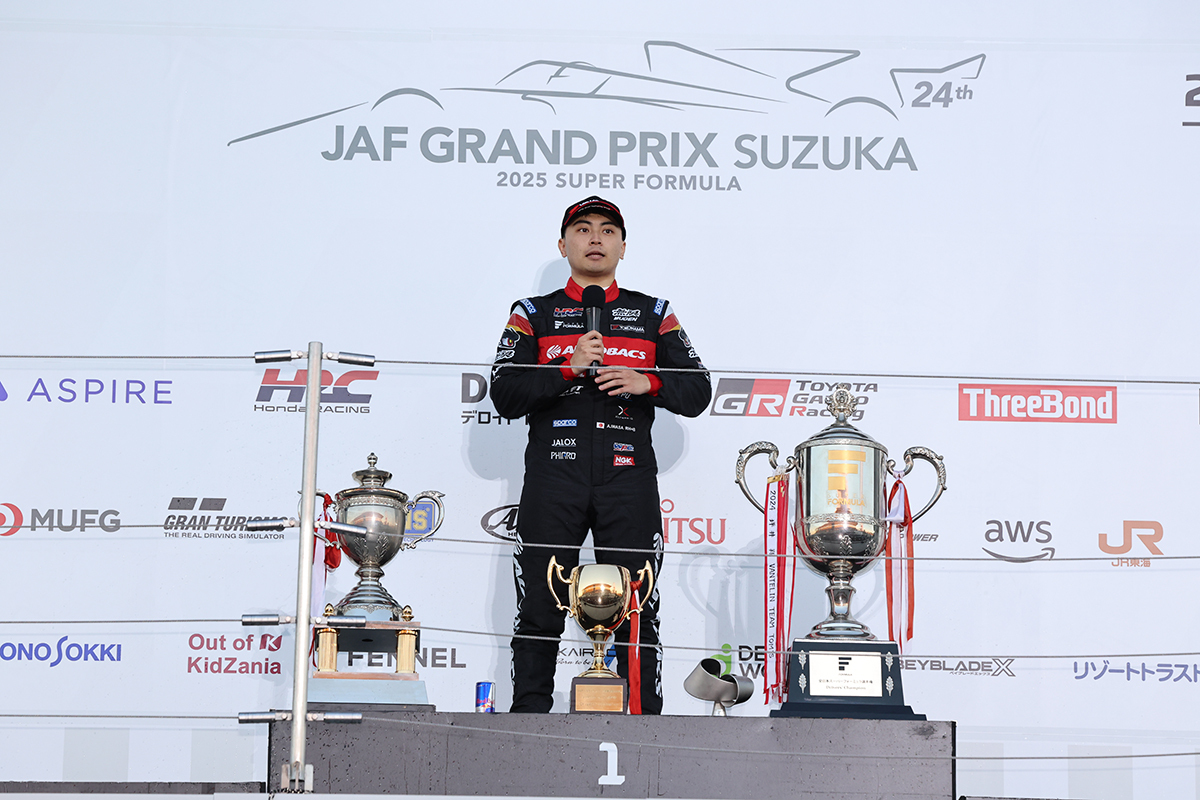 スーパーフォーミュラのドライバーチャンピオンは、自分のキャリアとして一つの目標にしていたところなので、もちろんそこにたどり着けたのは嬉しいことですけれども、まだまだ先を目指して、この経験を生かしてもっと速く強いドライバーになっていきたいと思っていますので、引き続き、応援よろしくお願いします。