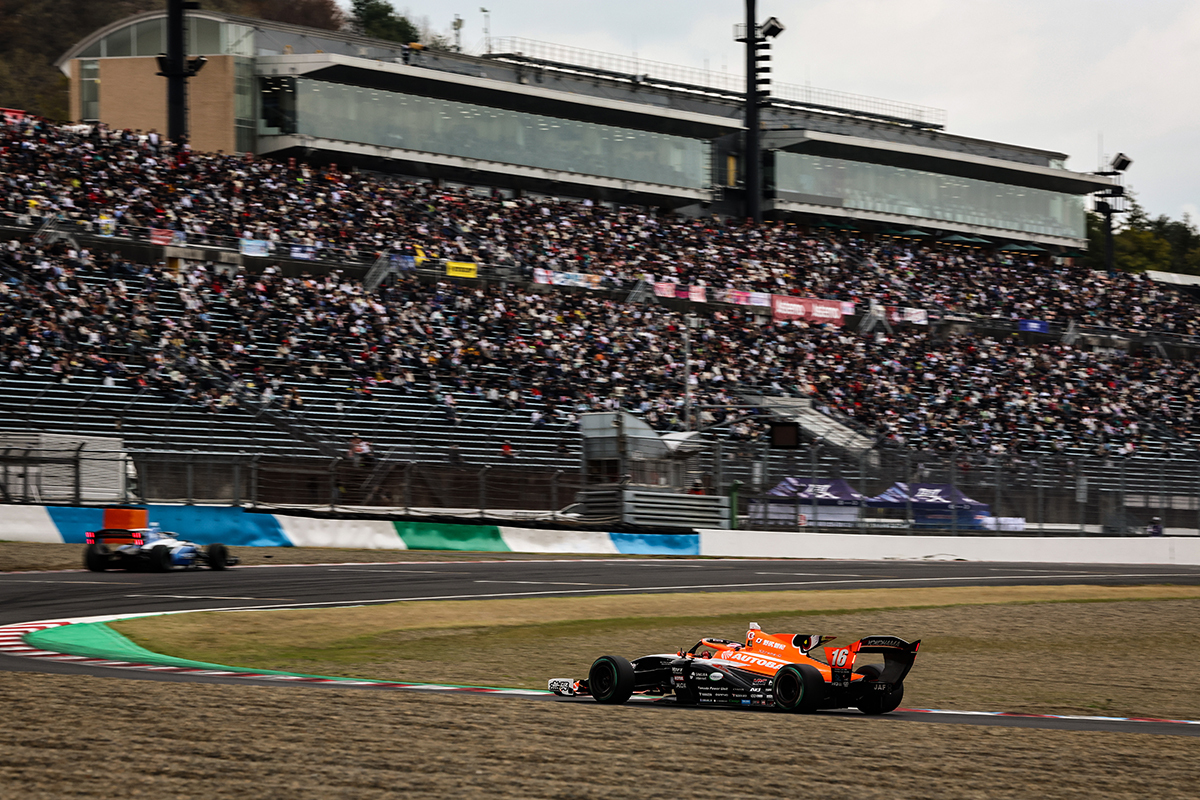 一方、#16 野尻選手は1周目のS字コーナー出口で他車と接触。フロントウイング破損のためピットに戻って交換作業を実施し、最後尾からの追い上げとなる。26周目にタイヤ交換、20位で戻り18位まで上げてレース終了となった。