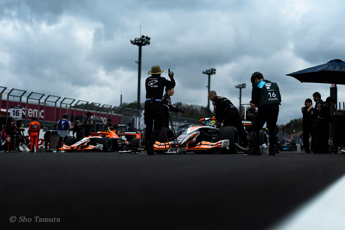 第2戦、予選は岩佐選手が3位で野尻選手が4位と1列目には並べませんでしたが、2列目のグリットに並べることができ決勝に向け十分に期待できる予選結果でした。